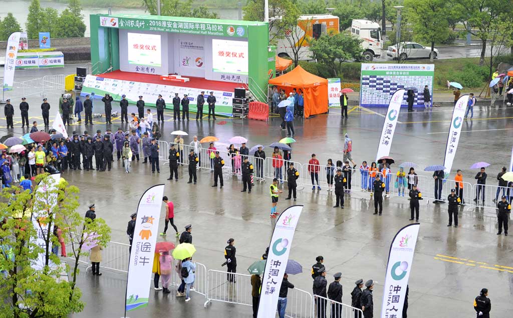 由中國田徑協(xié)會、江蘇省體育局、淮安市人民政府聯(lián)合主辦,金湖縣人民政府、淮安市體育局、江蘇省體育產(chǎn)業(yè)集團承辦的“2016淮安金湖國際半程馬拉松”比賽,于2016年5月15日上午8:30分在金湖縣荷花廣場鳴槍開賽,來自世界各地及我國長跑愛好者10000余名運動員參加了比賽。淮安市保安服務(wù)總公司派出700余名安保人員冒雨執(zhí)勤,提升了保安隊伍在復(fù)雜天氣條件下的快速反應(yīng)和安保執(zhí)勤的能力。
