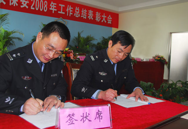 年度工作總結表彰大會上,婁伯翱總經理與保安部、押運中心、技術防范部等